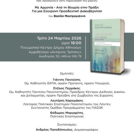 Η Ένωση Ρουμελιωτών Γαλατσίου- Λαμπρινής και οι εκδόσεις Ι. Σιδέρης προσκαλούν στην παρουσίαση του βιβλίου του Βασίλη Μαστρογιάννη “Με Αρμονία-